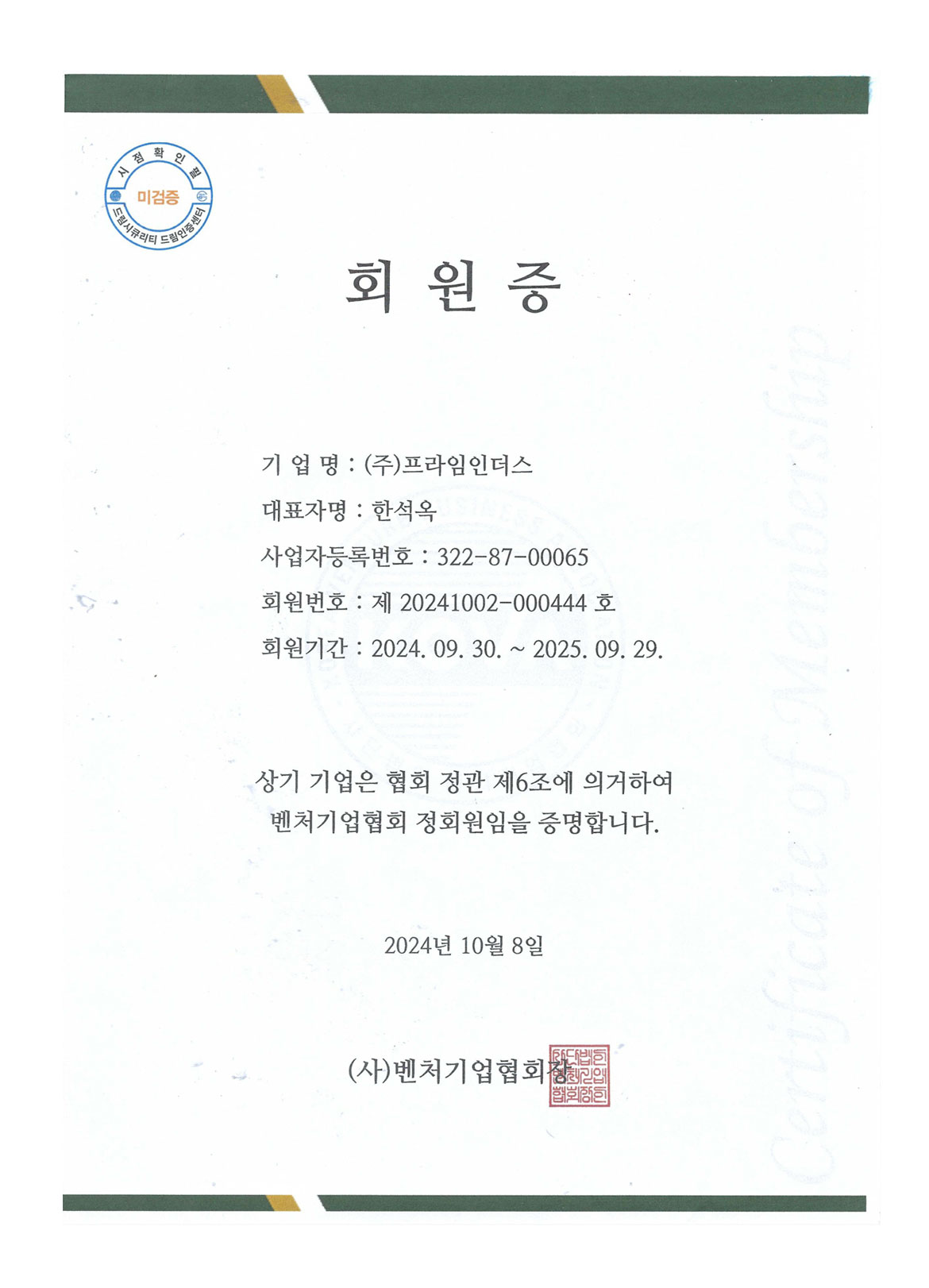 벤처기업협회 회원증