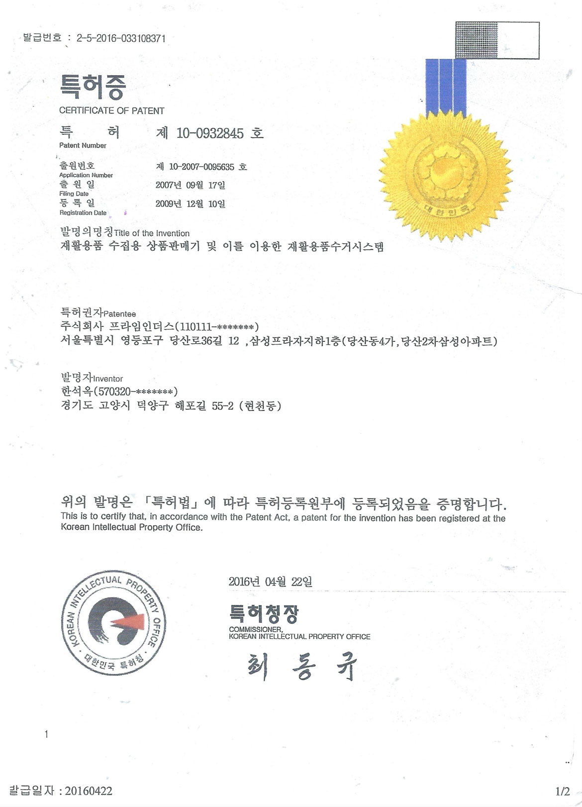 특허증