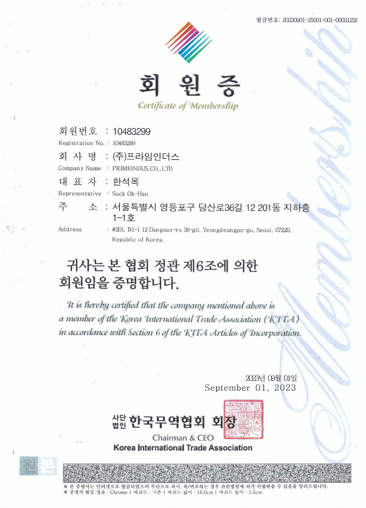 한국무역협회 회원증