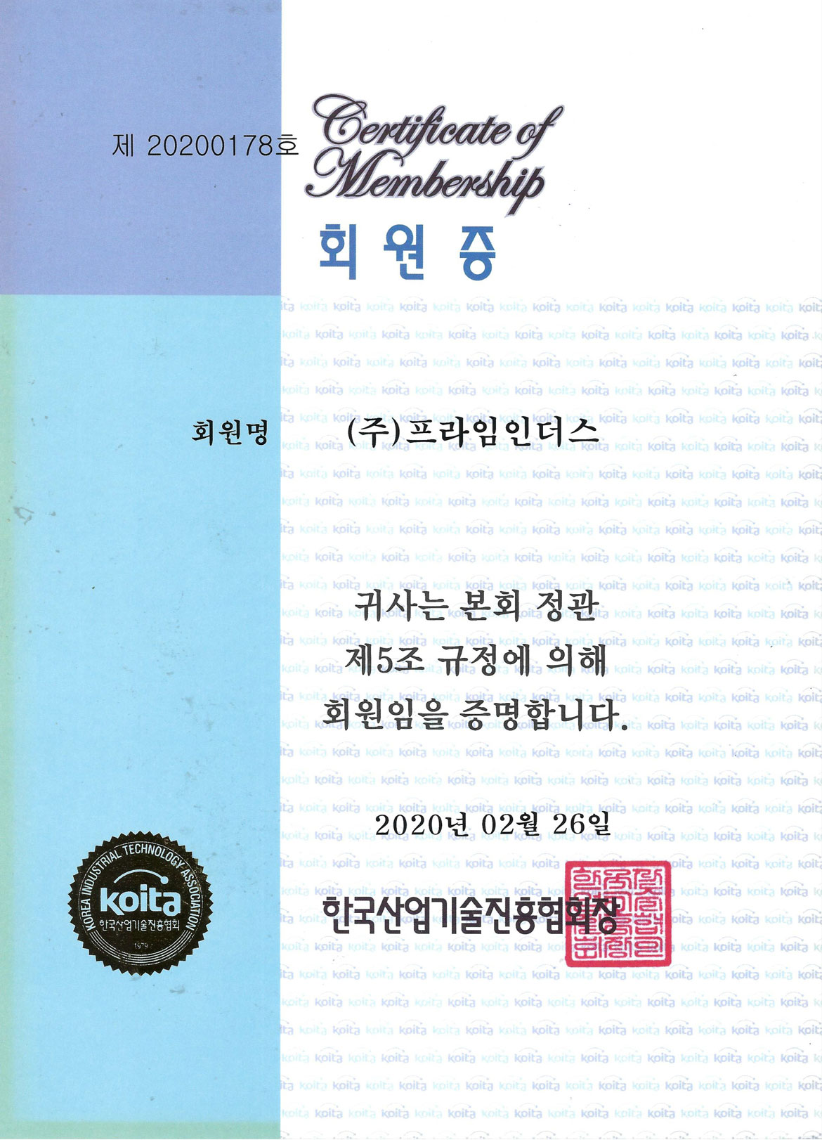 한국산업기술진흥협회 회원증